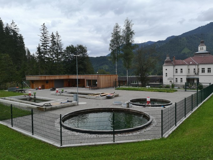 Für die Haltung und Verarbeitung der selbst produzierten Fische und der Schulung dieser Tätigkeiten steht unmittelbar bei der Fischzuchtanlage ein Infrastrukturgebäude mit 4 Innenbecken zur Verfügung.