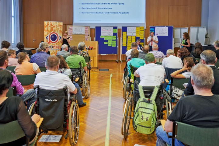Das Thema der Sitzung war „Barrierefreiheit im umfassenden Sinn“. Nach zwei Fachreferaten erarbeiteten die rund 110 Teilnehmerinnen und Teilnehmer an Thementischen Vorschläge für den Abbau von Barrieren.