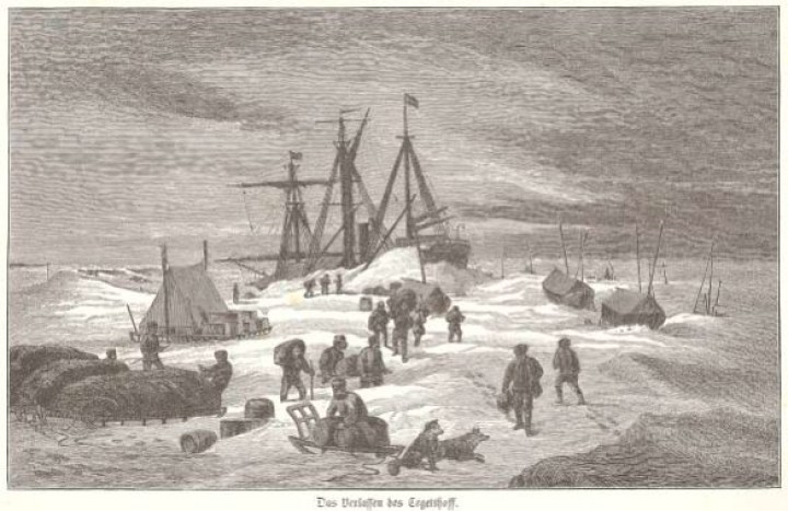 Im Frühjahr 1874 musste das von Packeis eingeschlossene Schiff, die „Admiral Tegetthoff" aufgegeben und zurückgelassen werden; zu Fuß brach man zum mehrmonatigen Rückmarsch nach Nowaja Semlja auf.