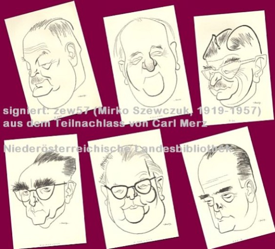 [Helmer], Waldbrunner, Kreisky, Maleta, Pittermann) im Nachlass, alle signiert „zew57", das ist: Mirko