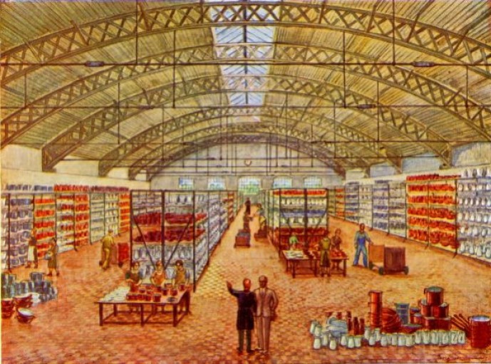 Eindrücke vom Innenleben der Riesswerke vermitteln unter anderen die hier gezeigten Abbildungen des „Emaillierwerkes" sowie des „Magazins".