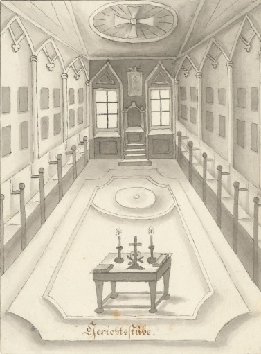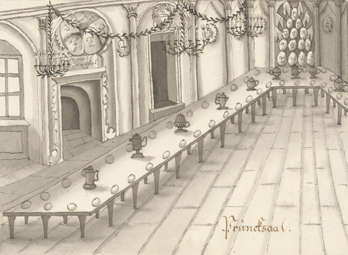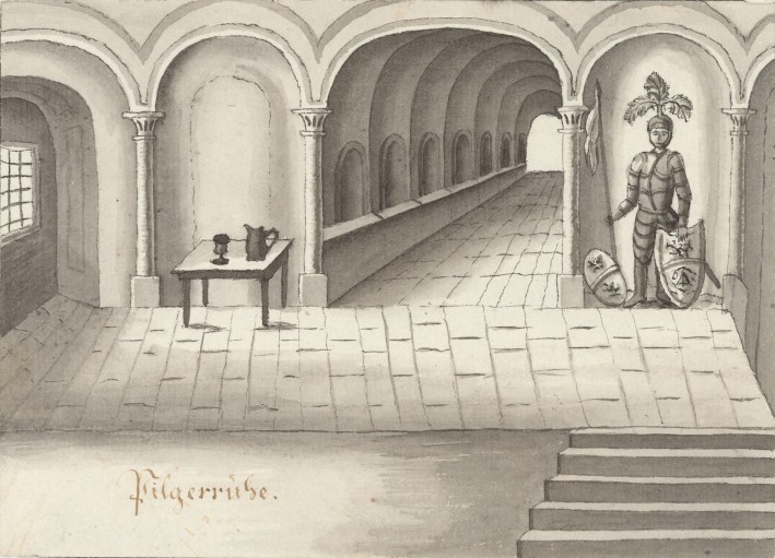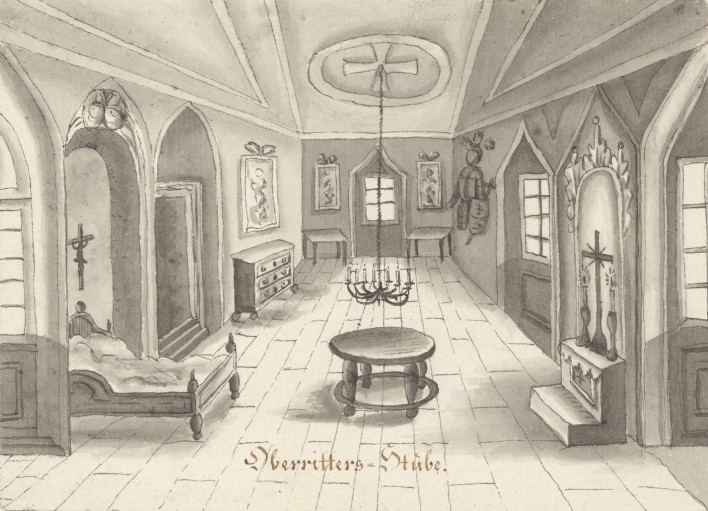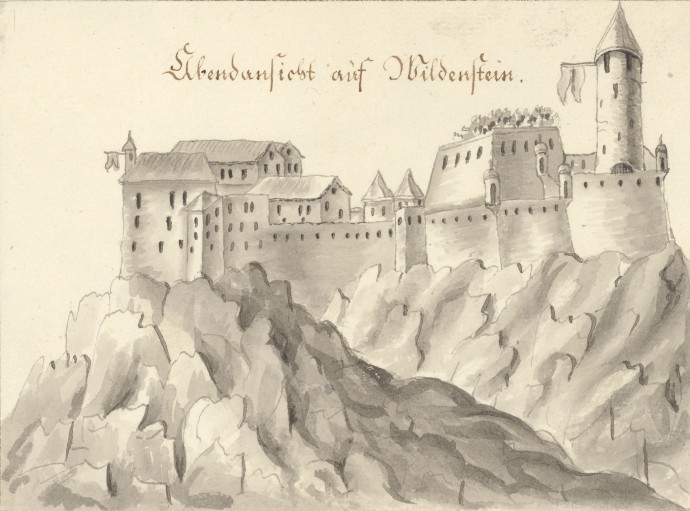 Auf Franz Pichler alias Hildebrand auf der Quick, gestorben 1820, k.k. Tabakverleger zu Wiener Neustadt, gehen diese 14 lavierten Zeichnungen zurück, die die Erinnerung an ein Festbankett am 4. Oktober 1812, dem (katholischen) Festtag von Franz von Assisi und Namenstag von Kaiser Franz I. von Österreich, aufrecht halten. Die Wildensteiner Ritterschaft auf Blauer Erde, 1790 von Anton David Steiger (Hainz am Stein der Wilde) gegründet, residierte auf Burg Seebenstein; ihr prominentestes Mitglied war der Bruder des Kaisers Erzherzog Johann (Hanns von Oesterreich der Thernberger), 1807 bis 1828 Inhaber der Herrschaft Thernberg. Im Jahr 1823 wurde der Ritterbund auf “Wunsch” von Kaiser Franz durch Metternich aufgelöst.