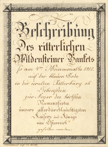 Beschreibung des ritterlichen Wildensteiner Bankets so am 4ten Weinmonaths 1812 auf der blauen Erde in der uralten Ritterburg ob Sebenstein zur Feyer des höchsten Namensfestes unsers allerdurchlauchtigsten Kaisers und Königs von Österreich gehalten worden.