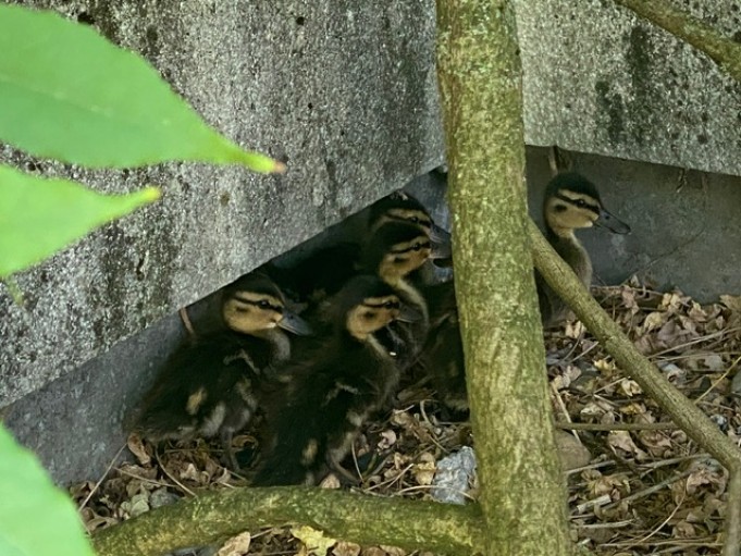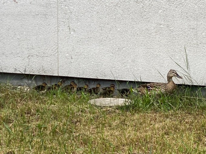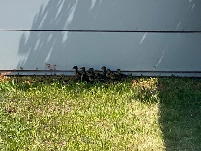 Leider war bald abzusehen, dass es mit dem Flügge-Werden hapern dürfte. Obwohl eine Rampe zur Verfügung gestellt wurde, um das Abheben zu erleichtern, nahmen die Enten diese Gelegenheit nicht wahr und blieben lieber bei uns. Nachdem wir nur mehr sieben Küken zählen konnten (möglicherweise aufgrund der hohen Hitze), wurden diese eingefangen und werden jetzt aufgepäppelt, um in ein paar Wochen ausgewildert zu werden.